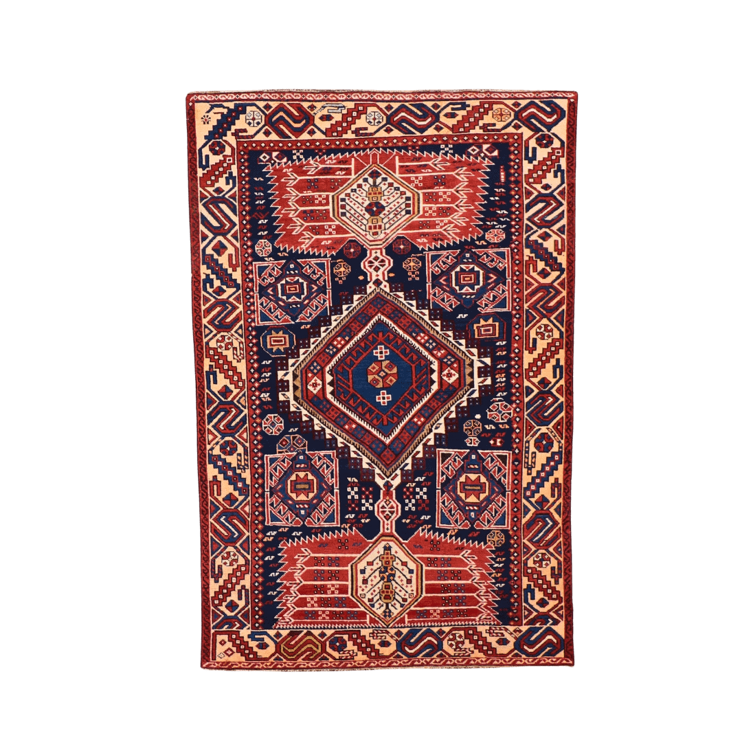 Located in eastern Azerbaijan, Shirvan was a renowned center of rug production throughout the 19th century. Its weaving tradition blended local motifs with influences from neighboring districts, fostering a rich tapestry of stylistic variations. The Karagashli substyle in particular drew praise for its bold geometric medallions and finely rendered details, while the “S” border references broader Caucasian symbolic themes, possibly linked to protective folklore or mythical creatures.