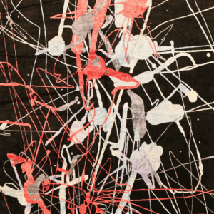 This striking modern Indian rug, featuring a dynamic paint splash design, is a contemporary masterpiece that marries traditional craftsmanship with innovative aesthetics. Measuring an impressive 11’10” x 18’4″, it offers generous coverage for large living spaces, high-end offices, or creative studios. The rug’s bold color scheme—comprising black, coral, ivory, and silver—creates a vivid, artistic statement ideal for modern home decoration.