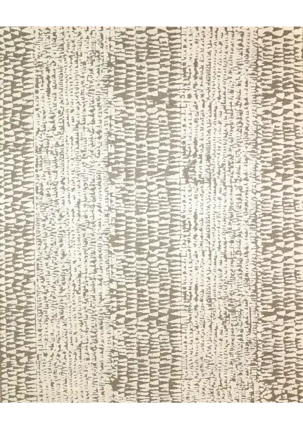 This gorgeous modern area rug uses ivory and light grey earth tones warm colors. It has a very fine weave with asymmetrical intricate details in design. It is all hand knotted all bamboo with vegetable dyed. It has simple abstract design with large patterns.