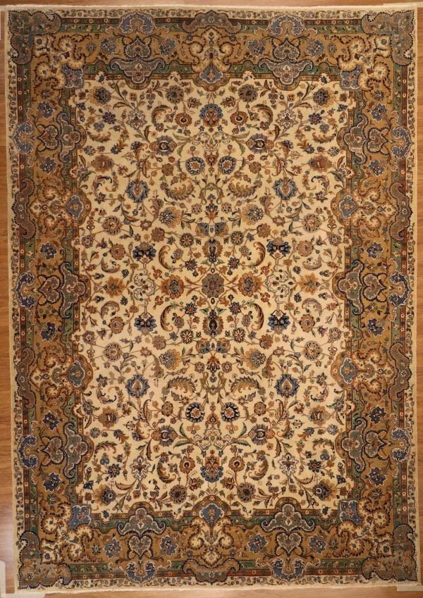 With its refined palette and flowing design, this rug brings a serene, classical beauty to any interior setting. In very good condition, it remains both decorative and collectible—a timeless piece of Persian textile art.